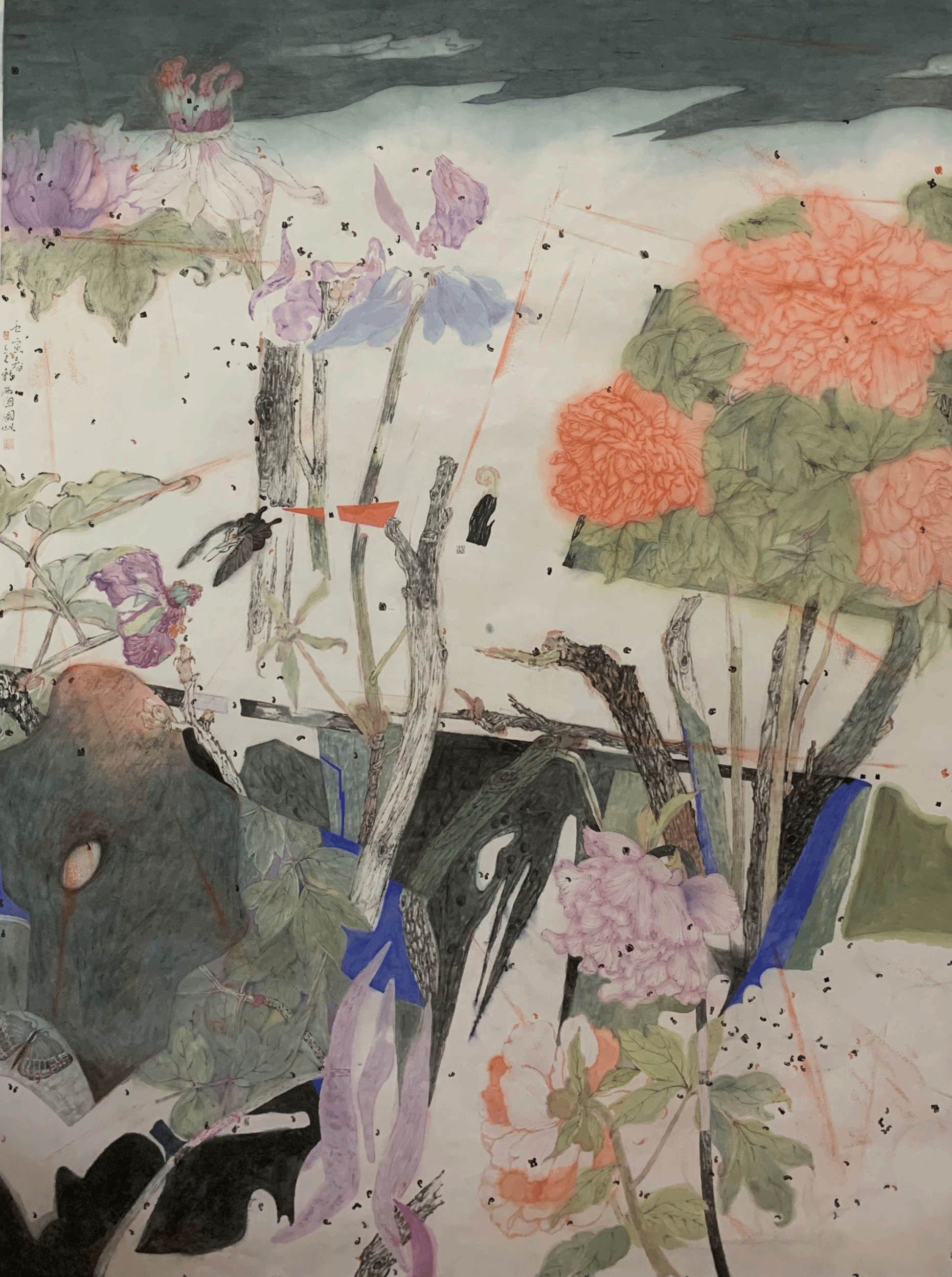 《信流引向花深处》国画