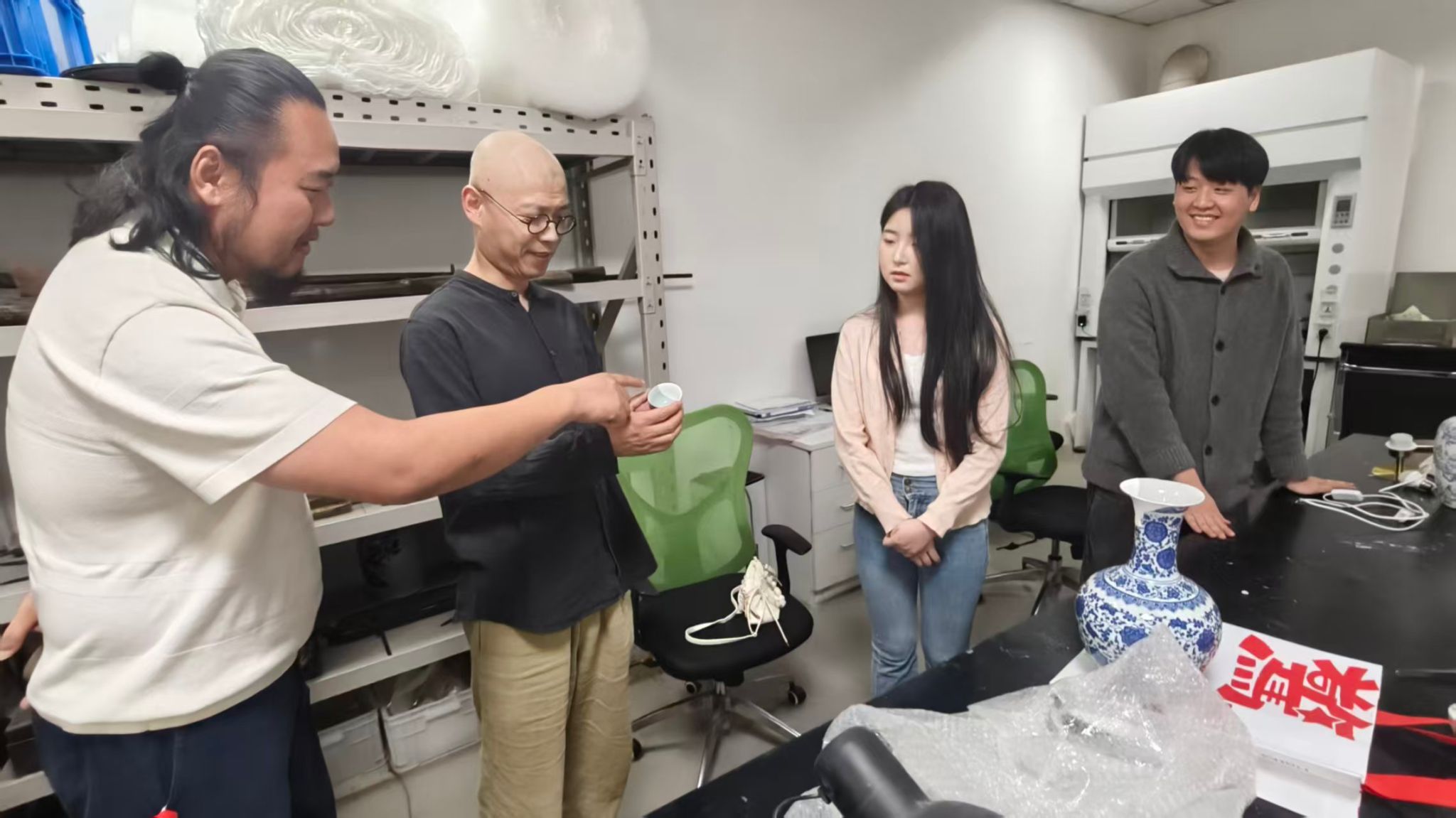 调研团队观摩了我院实习学生的操作演示并查阅了其近期修复成果。学生就瓷器补配、书画揭裱、古籍修补等具体任务进行了技术汇报。宋述林对修复作品的精细度、规范性进行了专业点评,实地评估了教学大纲与企业实践环节的衔接效果,收集了关于课程设置与行业标准匹配度的反馈数据。