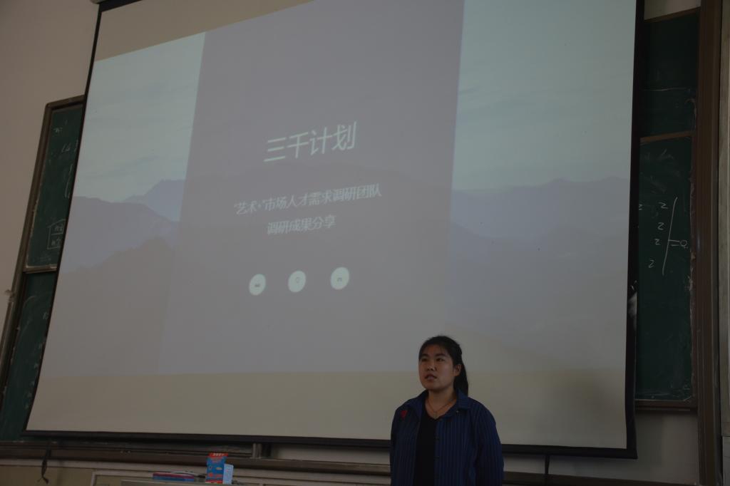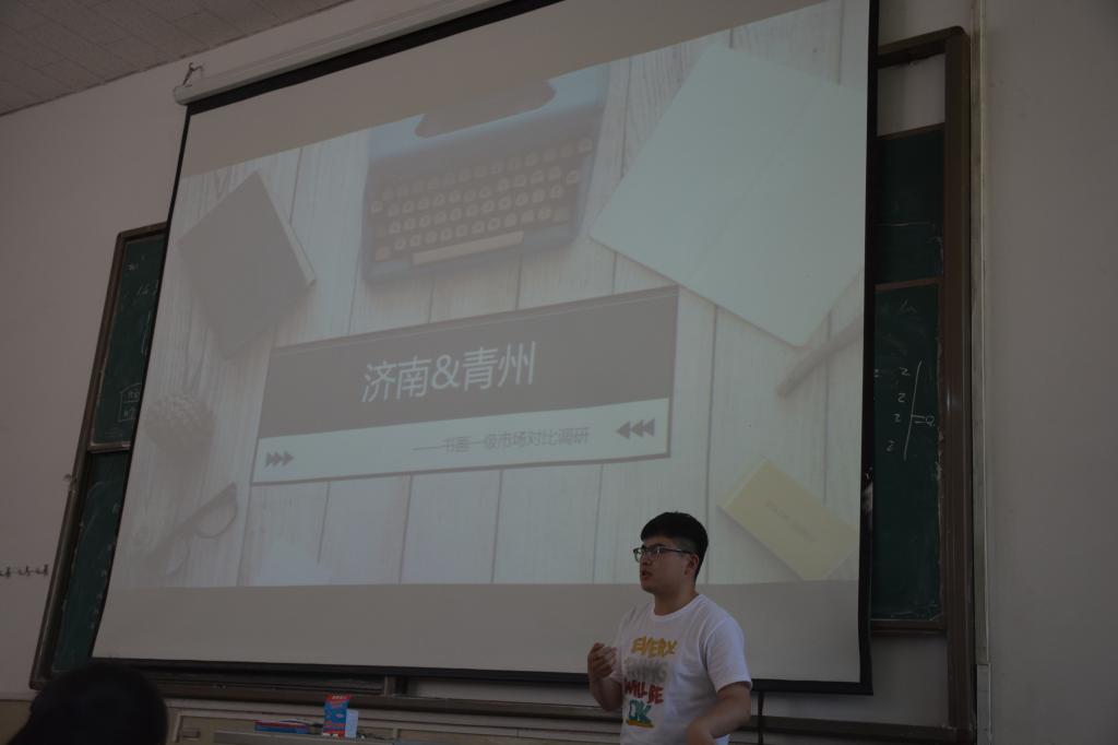2017年优秀团队代表于涛、唐慧宇讲解了青州&济南的书画文化市场与目前趋势以及对“艺术+”人才市场的调研。他们着重从实践活动过程中的一些具体步骤向大家进行汇报讲解,为我院“三千计划”发展奠定了良好的基础。