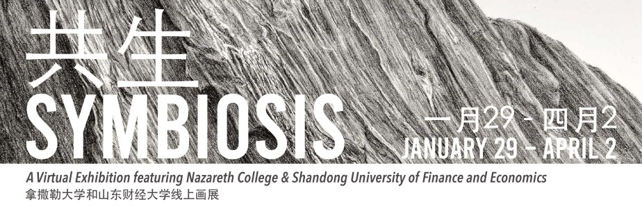 Symbiosis is an exhibition that builds on the cross-continental and cross-cultural partnership between Nazareth College in Rochester, New York and Shandong University of Finance and Economics in Jinan, China. It features work from faculty members from both institutions working across various media, providing a compelling display of work that invites viewers to experience a diversity of cultural expressions of art. It is our hope that this exhibition, highlighting the important, mutually beneficial relationship and valued partnership between the two institutions and faculty cohorts, will serve as a bridge, opening students and other viewers’ minds to how art can create connections across cultural difference.