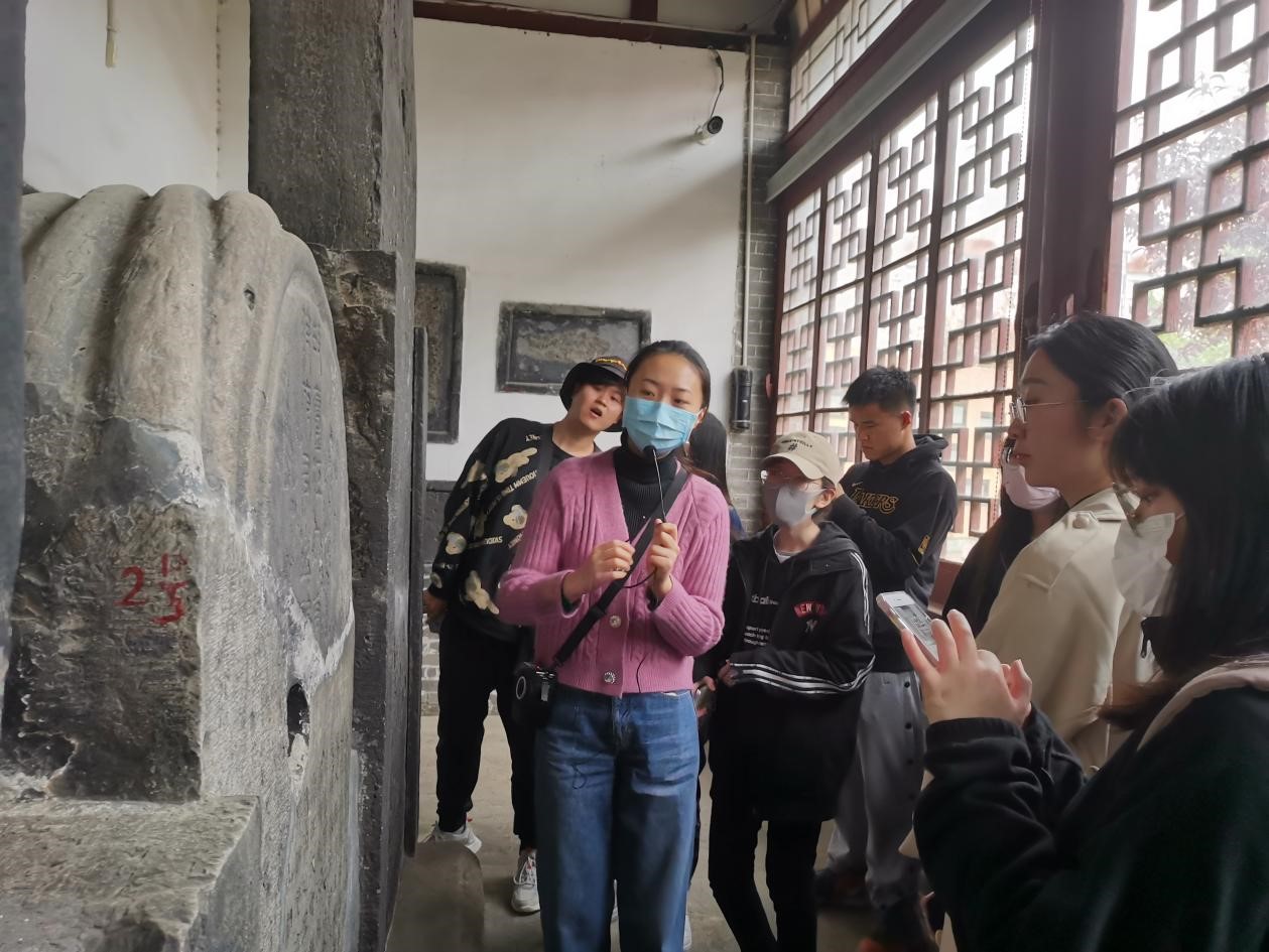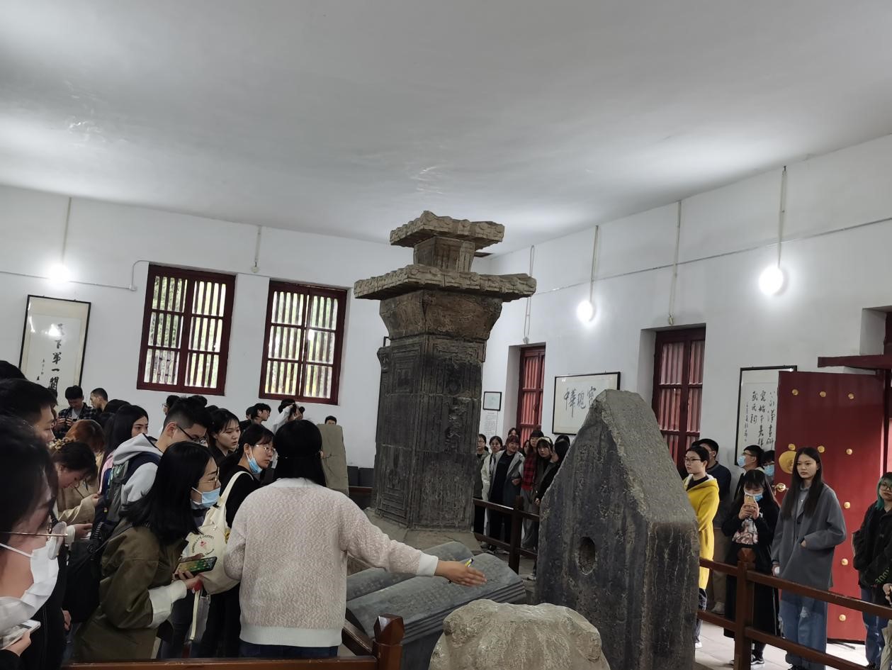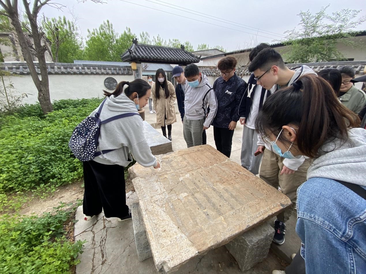 21日上午,大家乘大巴车来到了我国最大、保存最完整的汉碑、汉画像石群--嘉祥武氏祠。嘉祥武氏祠为东汉晚期武氏墓地三座石祠堂,分别为武梁祠、前石室、右石室三部分,石刻画像内容丰富,雕制精巧,几乎包括了汉代画像石中流行的题材,其中以历史故事画像最为丰富,从各个不同的角度反映了东汉时期的社会状况,风土人情,典章制度,宗教信仰等。学生通过对画像石的画面观察,分析图案体现出的艺术性、动态性、学术性,研究画像石刻画生动的历史故事人物与人物之间的动态表达,为文创中现代元素和传统文化的结合奠定了基础。接着大家又前往济宁金石馆。了解制作拓片技术的有关技法和要求。