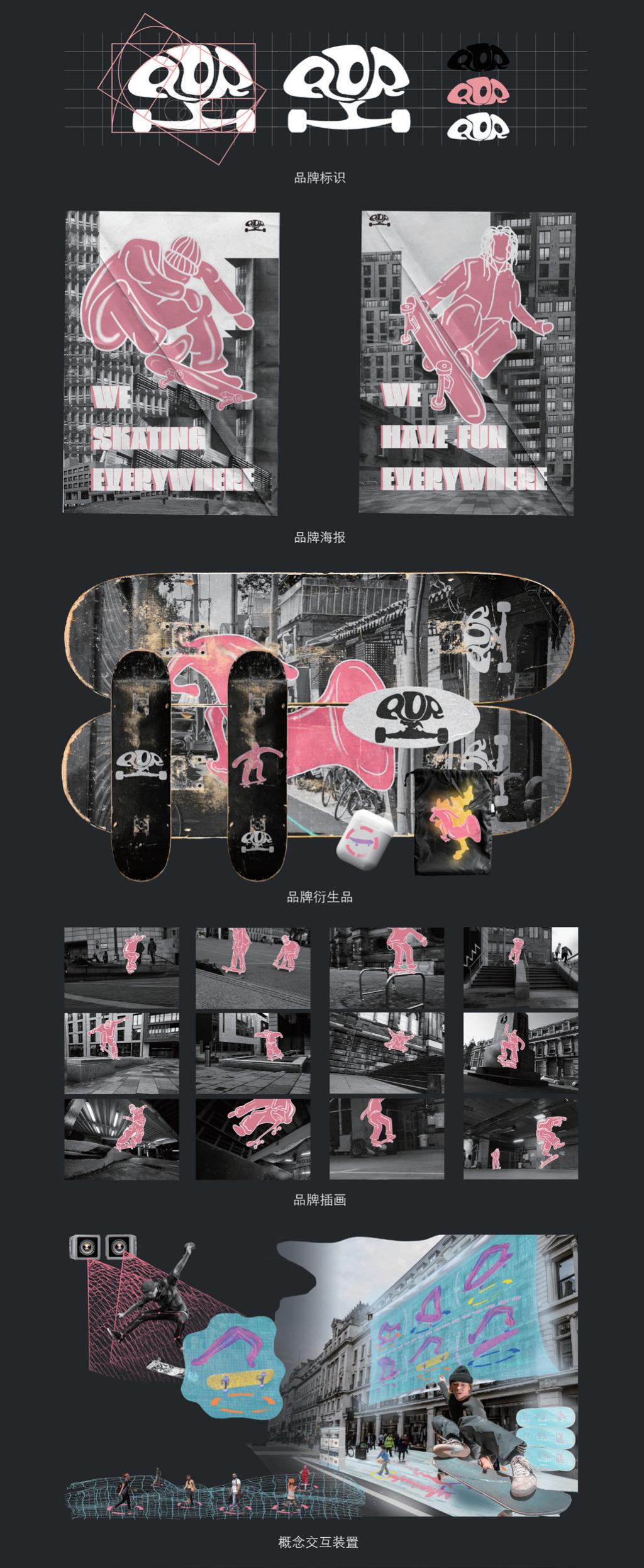 在提倡建设多元化、包容性城市的今天,人们需要重新思考城市空间规划的定位。滑板是基于城市产生的一项新兴运动,这项运动与文化产业紧密相连,并且其中的诸多运动方式使这项运动在打破现有城市空间僵化现状的研究中具有参考意义。品牌设计“RDR” 将诠释滑板文化在城市空间内的表达以及向观众传递为固态化城市带来乐趣的理念。