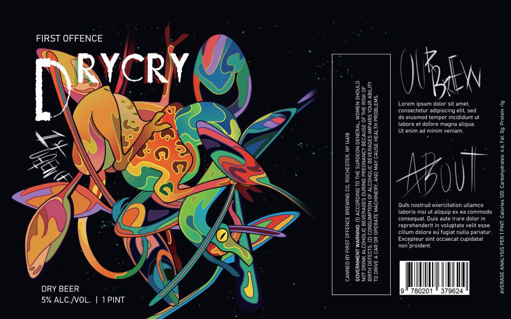 This project is a punk/alternative beer can design solution. I wanted to capture a unique feeling of wonder and allow the consumer to enjoy not only the drink but the entire design of the can. Two-thirds of the 1 pint can label space is dedicated to the label imagery and free branding. I imagine this brewery to have an art style and a free-hand type logo.