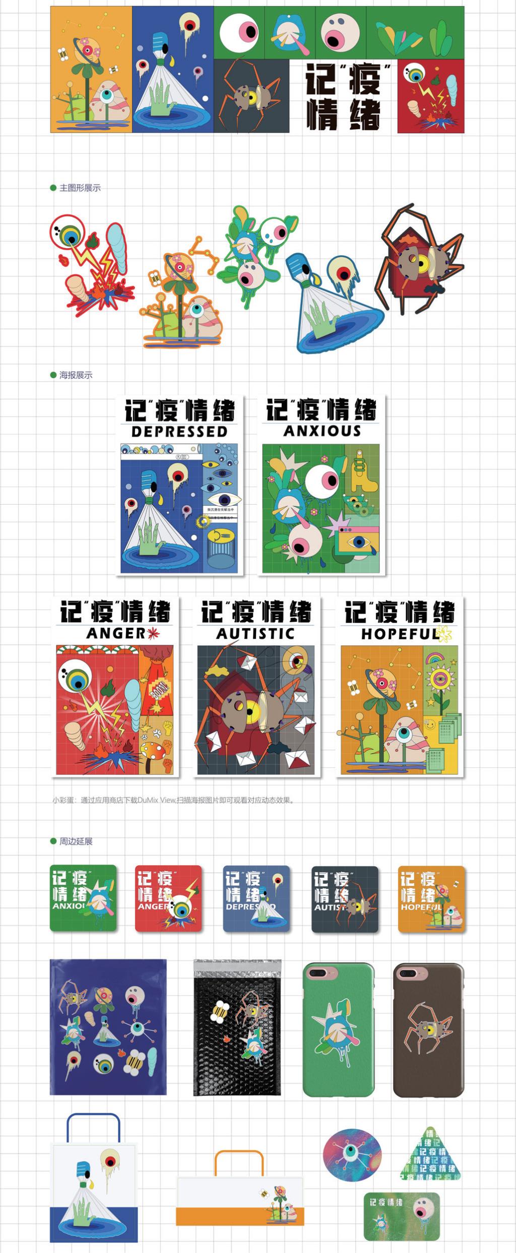 Based on the theoretical knowledge of art therapy and visual therapy, this design visualizes the psychological problems of people under the epidemic situation. Based on the five emotional states of anger, anxiety, depression, autism and optimism, this work expresses the development process of people's psychological state during the epidemic, from negative emotions to full of hope for the future. The five emotions design will be transformed into visual graphics for presentation, advocating people to release their pressure through artistic creation, pointing out a new way to treat psychological problems, so as to arouse people'sattention and thinking.