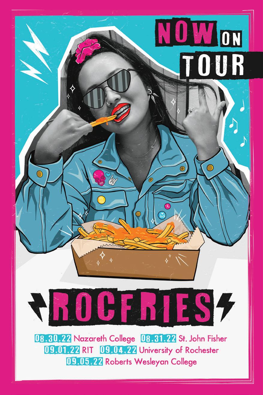 As part of a group project, I worked with two other design students to create a brand identity and ad campaign for Roc Fries, a fictitious food truck company based in Rochester, NY. Inspired by rock and punk music, our brand focused on gathering to enjoy good food, loud music, and celebrate the alt community. Our goal was to communicate to the target market that Roc Fries not only sells food, but alsoan experience that brings people together.