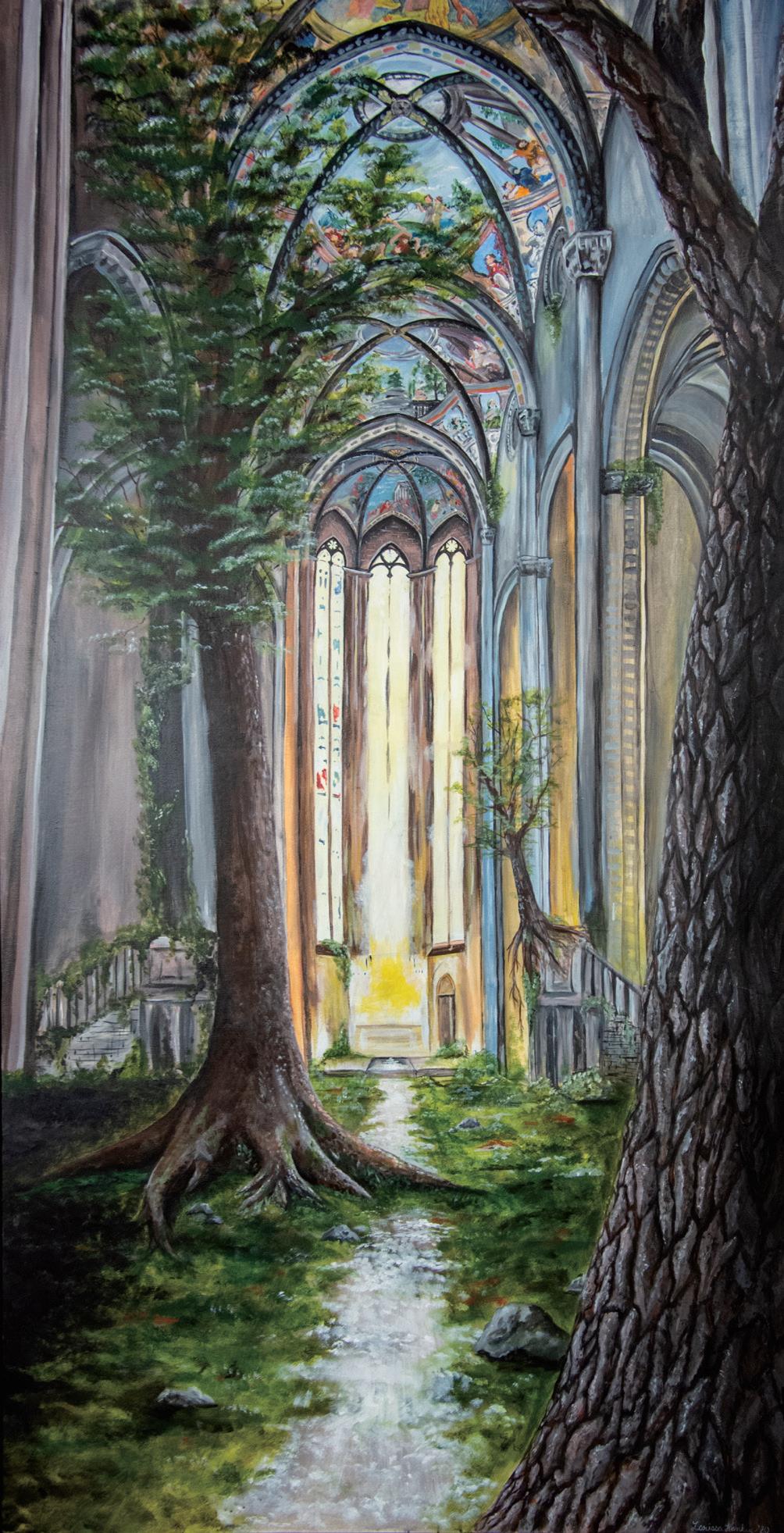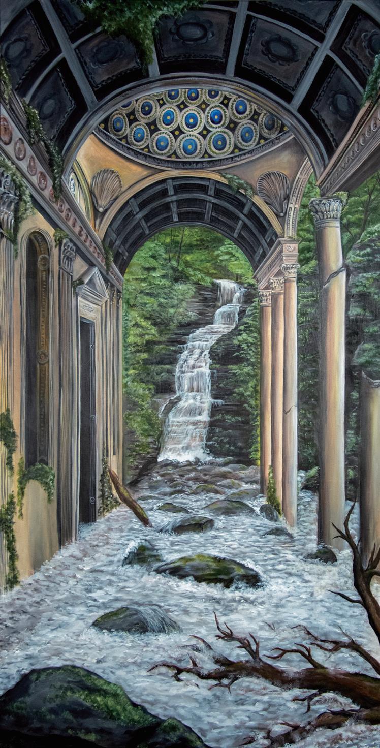 Life finds a way; nature will reclaim. I work in a variety of mediums but mainly create acrylic paintings, ceramic sculptures, and dance films to portray my message. Inspired by my travels to Brazil and Italy, historical ruins, and life experience I explore different ways in which nature takes back what it once had. I strive to combine my love for the outdoors and architecture in a cohesive manner, which typically involves trees, vines, and other greenery seeping its way into buildings and other manmade objects. My work comments on the perseverance of nature which can result in both beauty and destruction.