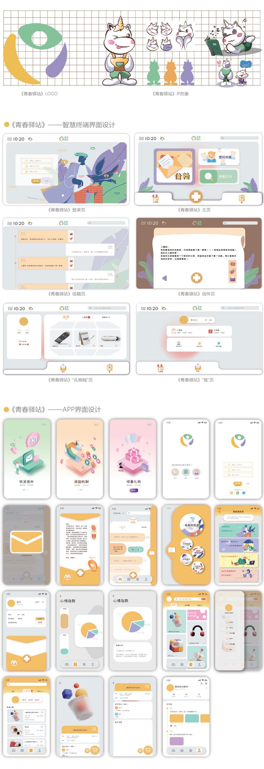 Left-behind children at the age of 12 to 16 begin to have a sense of independence, pursue themselves, show more curiosity to the outside world, and face emotional and psychological problems in adolescence. For left-behind children in this period, family care is still important, but it is not the only one. At this time, correct school education and social help are also particularly important. , therefore, the author devotes to emotion into dots, explore and put forward the power of this group implement the feasibility of the "precision caring about" approach, with APP interaction system of intelligent terminal as carrier to carry on the design practice, set up a new emotional interaction system - "youth post" brand, to help adolescent leftbehind children and family, school and society totwo-way communication.