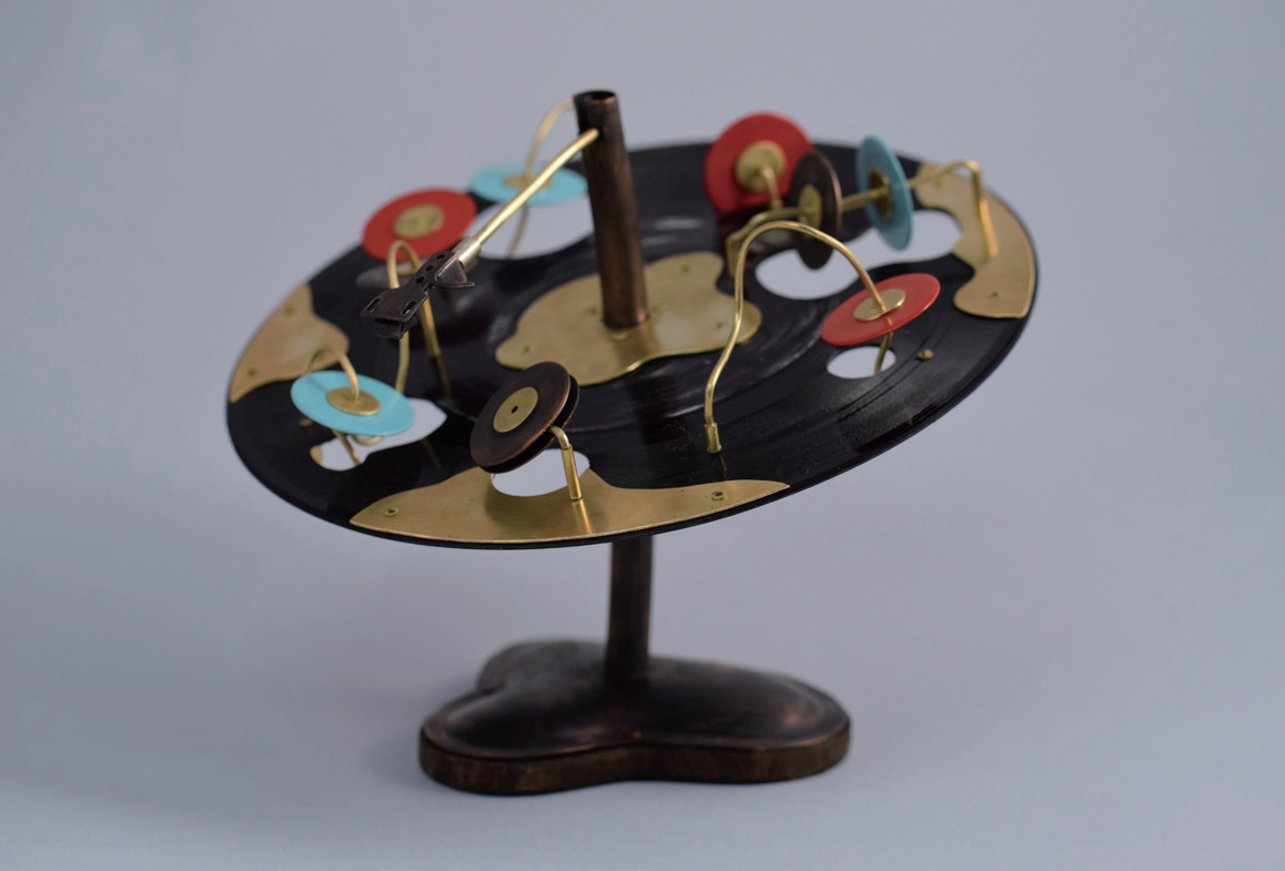 I’ve struggled with hearing loss for most of my life. Even more, I’ve fought to not see myself as a person who is broken or “less than” simply because I am incapable of functioning in ways that fit within the standard norms.Some may look at this vinyl and consider it defective. Others may recognize that although it has been repurposed beyond its intended use, it is still functional. Similarly, if another person is not operating or behaving in way in which they are expected to, it does not mean they are broken. This playful piece highlights the value of breaking free from societal expectations and presumptions.