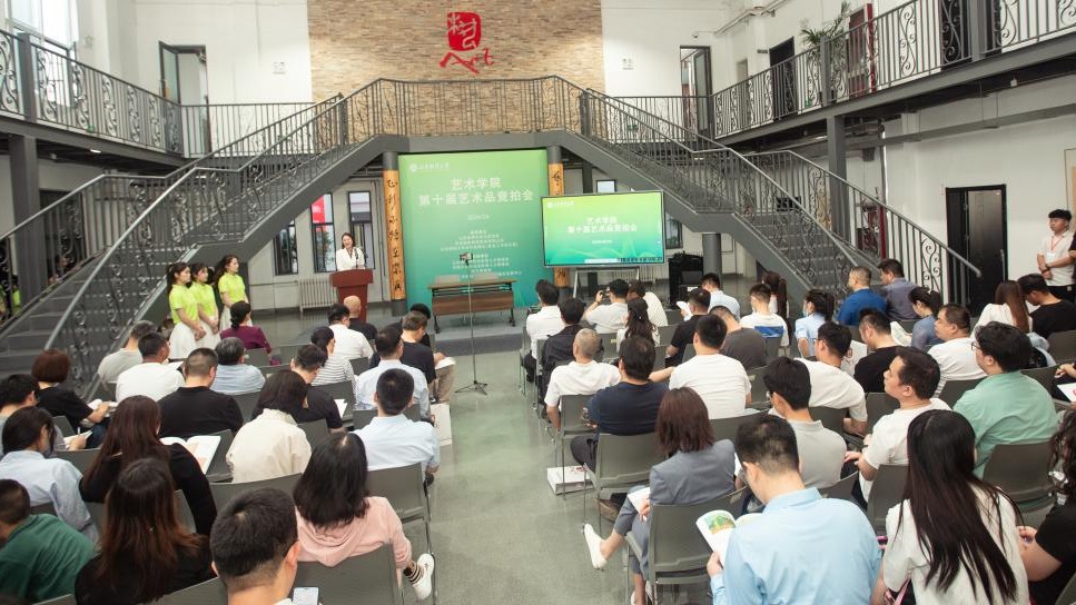 第十届艺术品竞拍会在燕山校区举行,山东省、济南市新的社会阶层人士联谊会、山东省电子游戏学会、沃尔德集团、自贸试验区济南片区文化艺术品展示交易中心等各界人士、学校有关部门、电子游戏