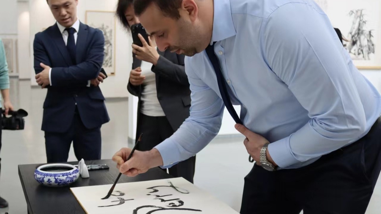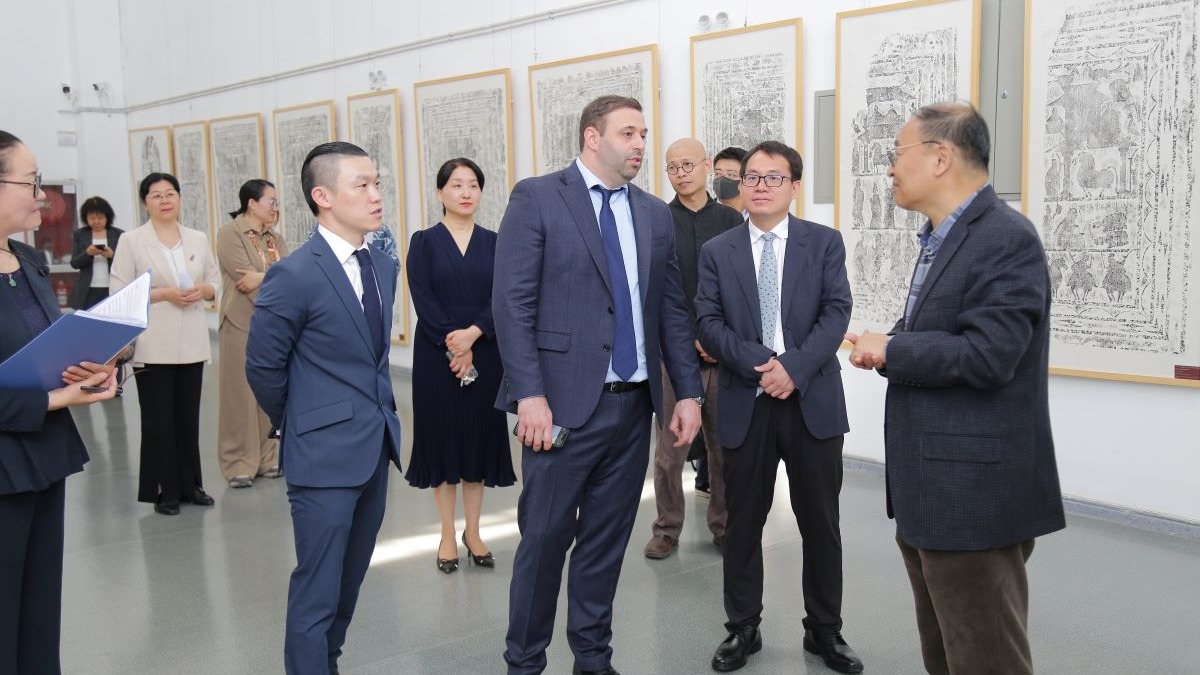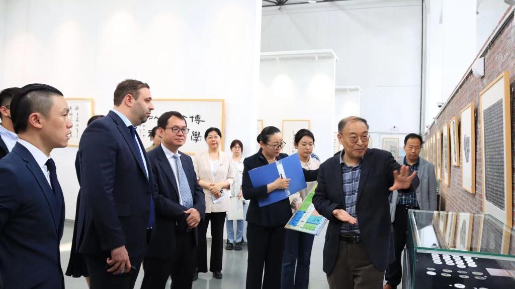 表示赞赏,走进美术馆大厅,他对馆藏的书法绘画作品和金石拓片非常感兴趣,认真听取工作人员的讲解并不时提出问题,时而分享个人观点,与大家开展了深入交流,参观结束前,杰克佩里还兴致勃勃地在留言册上用毛笔签下“xiao xiao perry,48”作为永久留念。