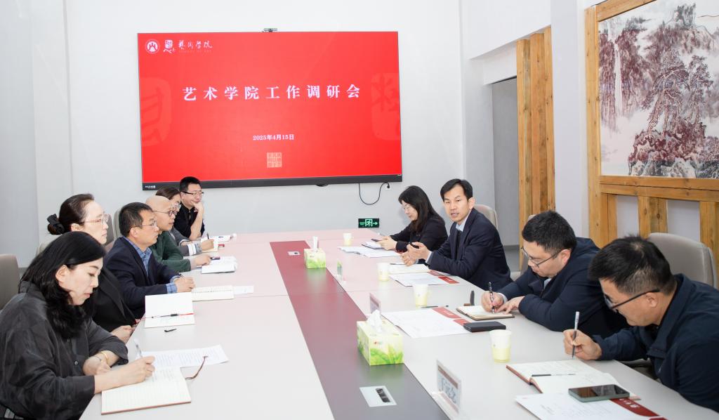 在人才培养、科学研究、社会服务、文化传承等方面取得的成绩给予肯定。针对学院工作实际和存在问题不足,谢申祥对学院发展提出三点要求。一是围绕中心、服务大局,坚持问题导向、目标导向,充分发挥学院比较优势,有效配置资源,高质量完成教育改革创新指标目标任务。二是以学科建设为龙头,开展有组织的科研工作,把教学、科研、社会服务、人才培养贯通起来,不断产出高质量成果。三是坚持“艺术+财经”“艺术+智能”交叉融合,坚持请进来与走出去相结合,借力破难题,合力促发展,发挥学院特色优势,服务学校高质量发展。