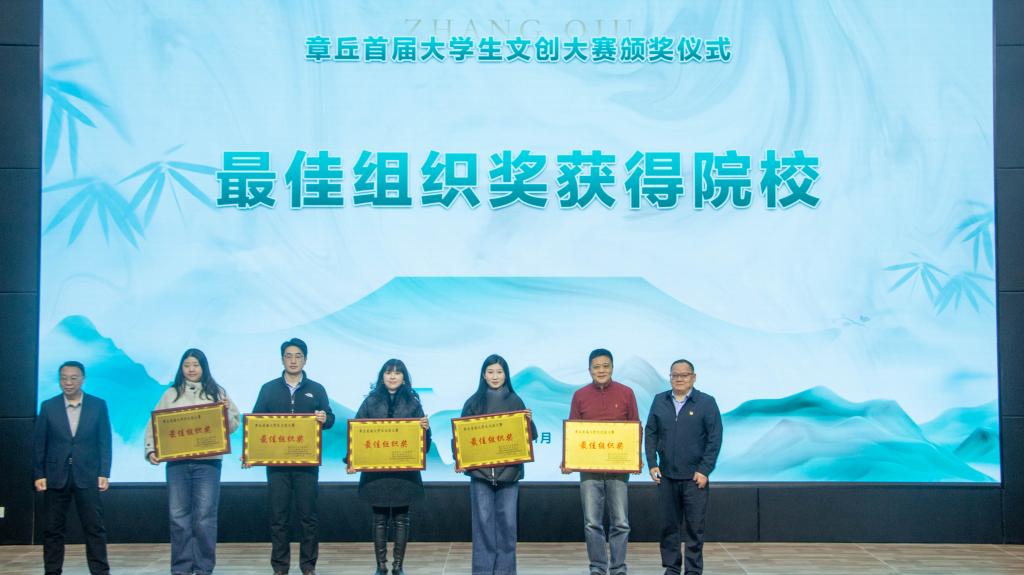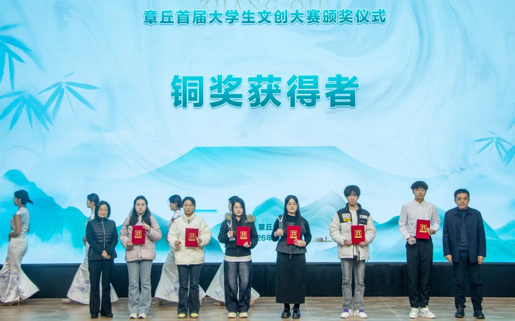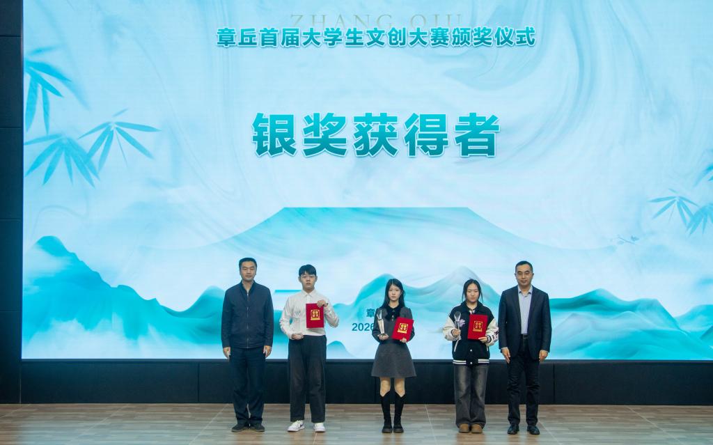 1月6日上午,由济南市章丘大学园区管理服务中心主办,济南市章丘区文化和旅游局、济南市章丘区融媒体中心、山东龙山产业发展投资集团有限公司等单位协办的章丘首届大学生文创大赛颁奖仪式暨章丘青年文创营启动仪式,在山东工程职业技术大学章丘校区举行。我院学子在此次大赛中表现亮眼,斩获银奖1项、铜奖1项、优秀奖3项的优异成绩;学校获评优秀组织奖。据悉,本次赛事共设各类奖项30项,我院获奖数量位居参赛单位前列。