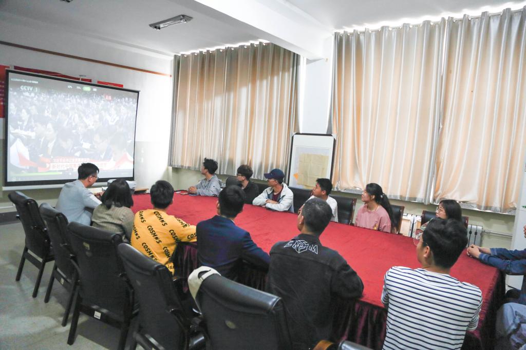 团委组织部分团干部和团员在燕山校区1204会议室收看了纪念五四运动100周年大会直播。