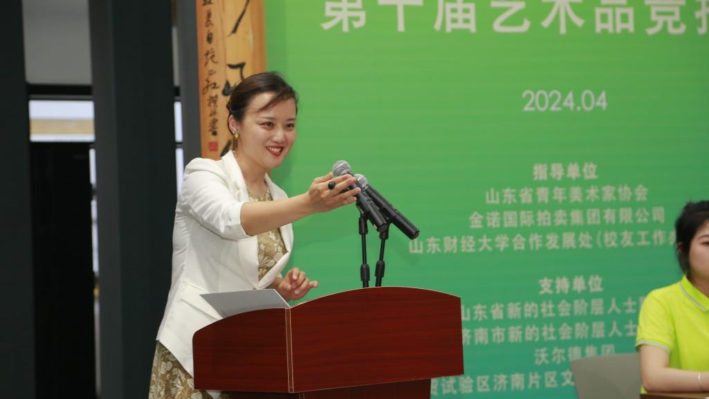第十届艺术品竞拍会在燕山校区举行,山东省、济南市新的社会阶层人士联谊会、山东省电子游戏学会、沃尔德集团、自贸试验区济南片区文化艺术品展示交易中心等各界人士、学校有关部门、电子游戏