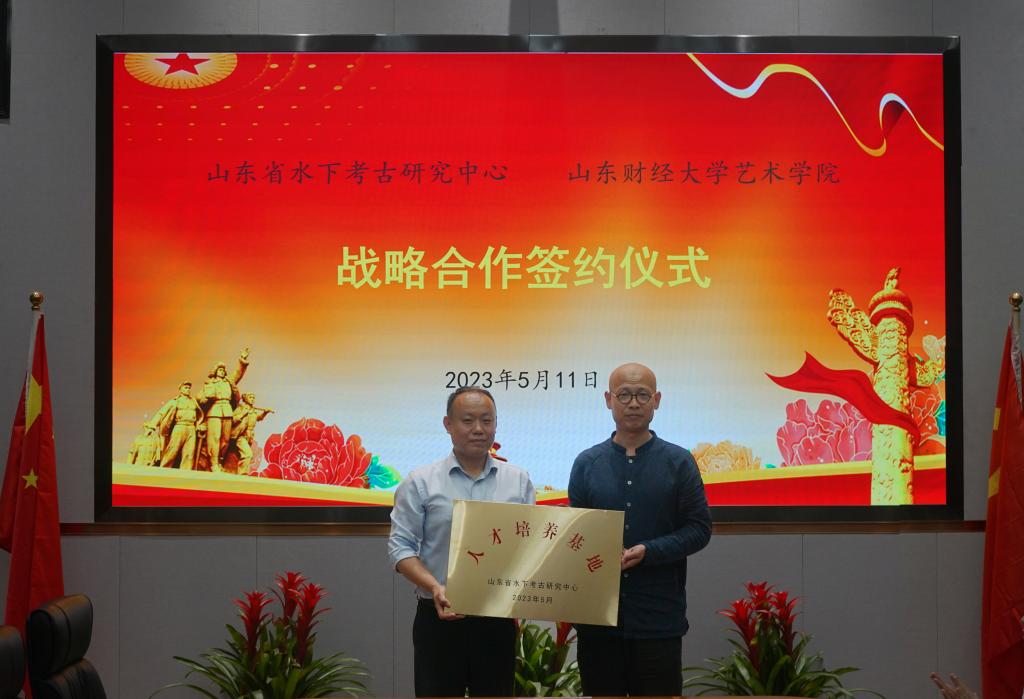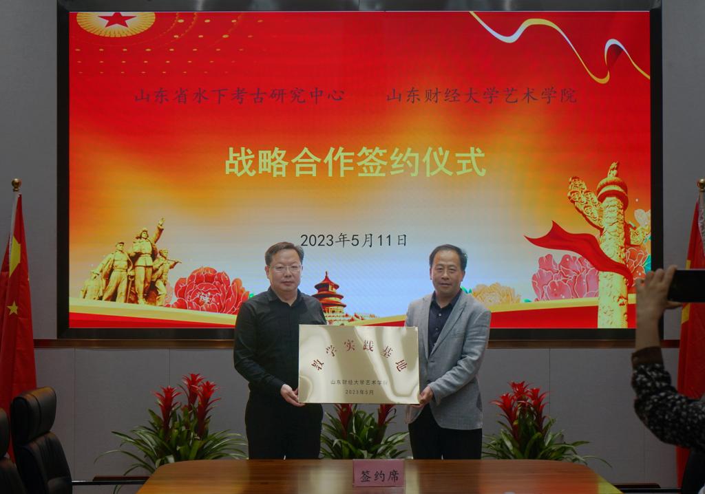 与山东省水下考古研究中心签订全面合作框架协议,水下考古研究中心主任刘延常、副主任杨勇,办公室主任张宾,学术交流与信息部主任魏泽华,电子游戏