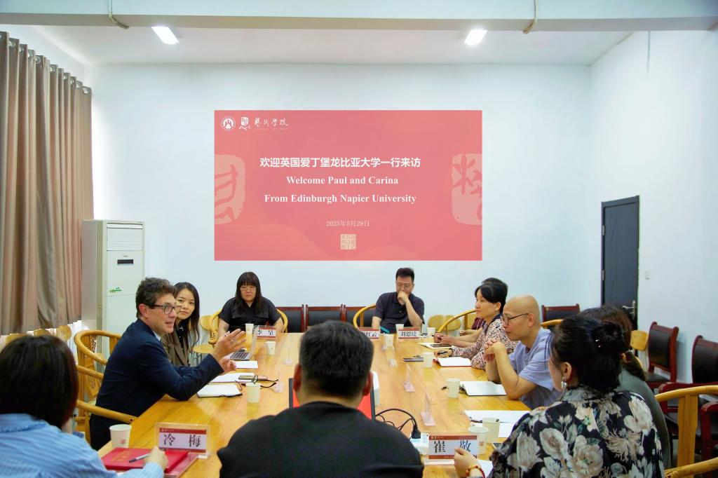 的发展情况,就本科“2+2”“3+1”双学位项目和研究生层面的合作模式提出了建议。Paul Holmes表示,两校艺术学科建交已久,一直以来保持良好的合作关系,期待未来双方在课程建设、合作教学等本科培养的基础上进一步拓宽在研究生领域的合作。
