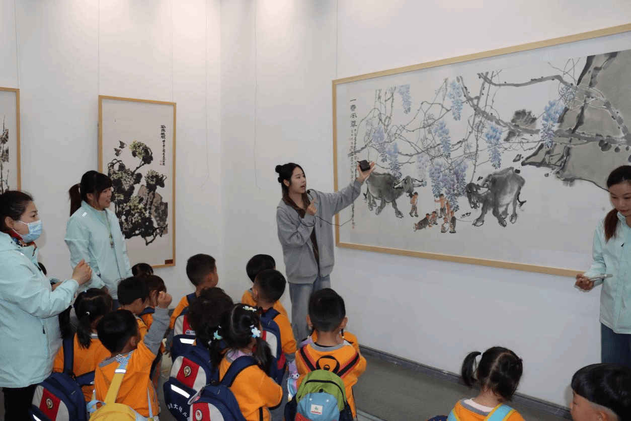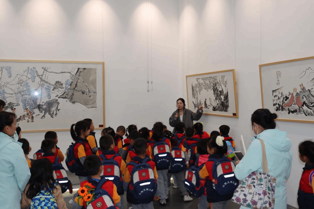 学生志愿者为小朋友们提供专属讲解服务。面对天真烂漫的孩子们,志愿者们摒弃专业晦涩的表达,用童趣化、生活化的语言,细致讲解馆内书画、碑刻拓片等各类艺术藏品,带领小朋友们近距离感受传统艺术的独特韵味。从笔墨丹青的意境之美,到拓片技艺的古朴厚重,孩子们睁着好奇的双眼,认真聆听讲解,在沉浸式观展中,慢慢感受艺术的魅力,幼小的心灵被艺术之美滋养。